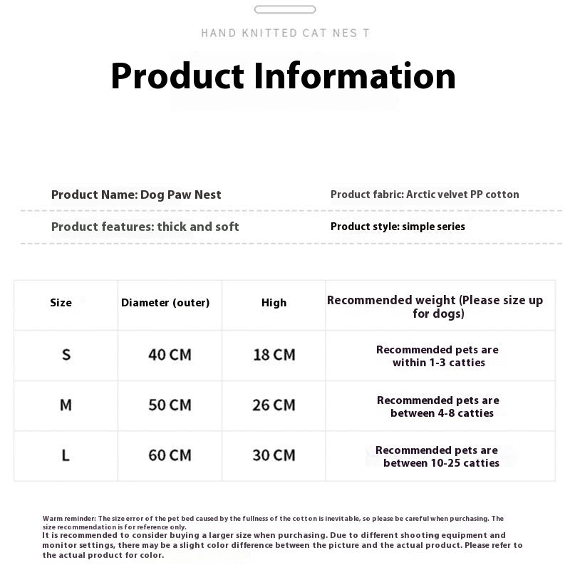 Internet Celebrity Dog's Paw Cat Nest Dog Bed Four Seasons Universal Pet Warm